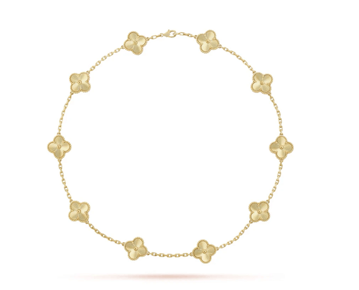 Clover NecklaceThis Van Cleef-inspired necklace is the perfect everyday statement. The Clover Necklace features five iconic clover motifs spaced evenly along a dainty chain — beautifully minimal yet full of character.